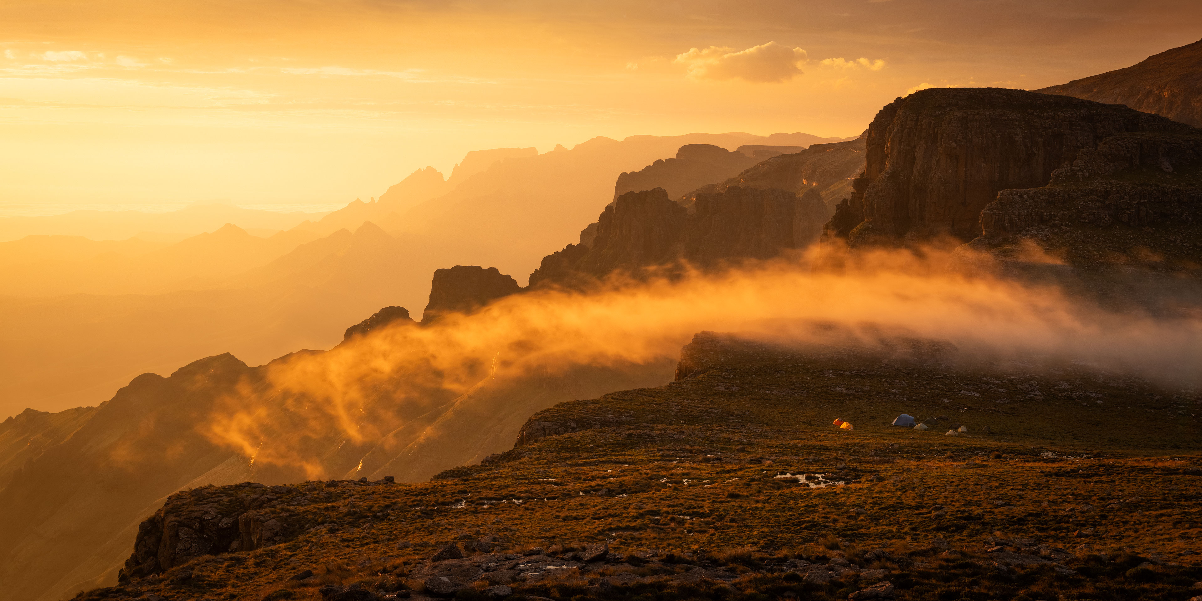 A final epic sunrise before descending to the hotel after 7 nights camped atop the Drakensberg Escarpment.
